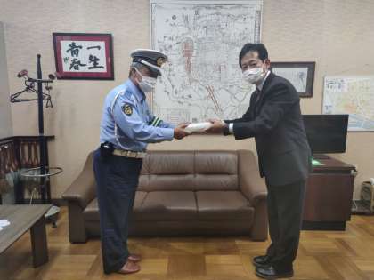 大阪府警様より、本校の交通安全に関する取り組みについて表彰いただきました。