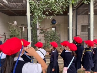 鳥類コーナーに来ました。猛禽類を見た子どもたちは、「かっこいい!」と声をあげていました。