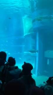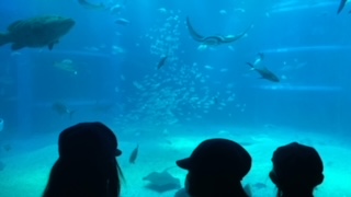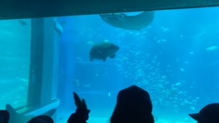 大水槽の前に来ました。大きな魚たちを観察していました。