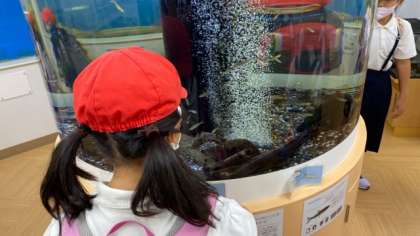 万博記念公園の近くに生息している魚や鳥を観察しました。