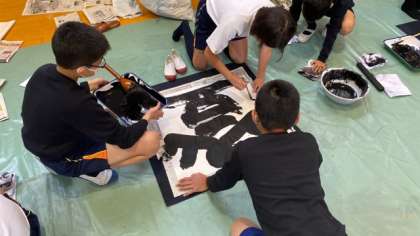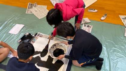大きな筆で、大きな字を書くことは、他では体験できません。本校独自の取り組みです。