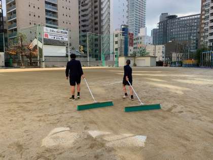 今回紹介する掃除の達人は6年生です。運動場の整地や、体育の授業で使用するラインカーの準備をしていました。西天満小学校の運動場がいつもきれいなのは、最高学年の掃除の達人のおかげですね!
