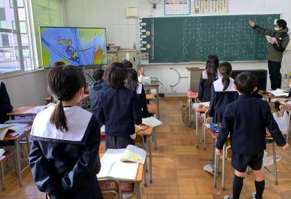 国語科で「おとうとねずみチロ」の学習をしています。今日はチロになったつもりで、チョッキをくれたおばあちゃんにお礼を伝えました。チロの気持ちをよく考えて、大きな声で発表する事ができました。
