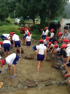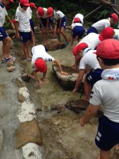 予定通り さかなつかみ をしました。慣れない手つきで、歓声をあげながら、楽しみました。