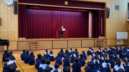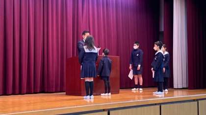 校長先生の話の後、表彰や学年代表の発表がありました。
