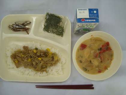 「きんぴらちらし ぞう煮 ごまめ 牛乳 きざみのり」
