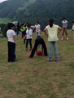 球体の容器の中心部にシャーベットのタネを入れます。その周囲に氷と塩を入れて、転がします。この作業を繰り返すうちに、シャーベットが出来上がります。美味しくいただきました。