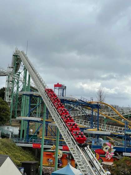 ジェットコースターやメリーゴーランドなど乗り物に乗って楽しんでいます。