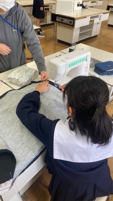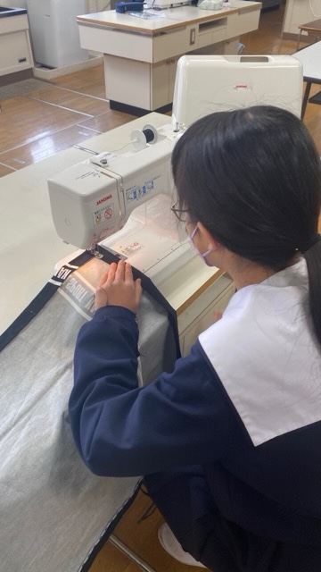 5年生からミシンを使います。まっすぐ縫うことだけでも、とても難しいので、全集中しています!