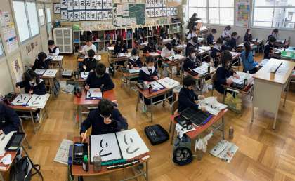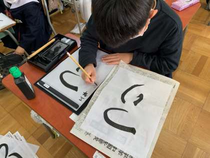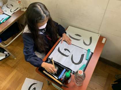 習字の時間に「つり」を書きました。3年生から始まった毛筆の学習ですが、みんなこの1年でとてもていねいな字を書けるようになりました!