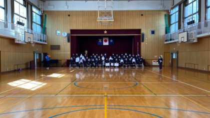 1年生が新入生のお迎えの練習をしています。在校生一同、入学されるみなさんとお会いできることを楽しみにしています!
