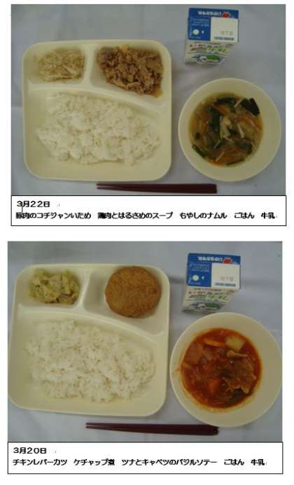 3学期の給食も残すところあと1日になりました。クラスで食べる給食も明日で最後になります。楽しい給食時間にしましょう。