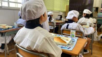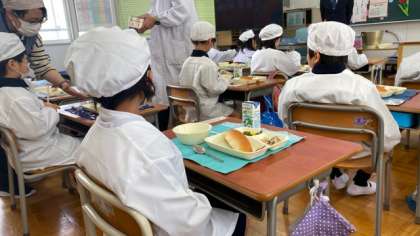 今日から給食がスタートしました。小学校生活、最初の給食です。