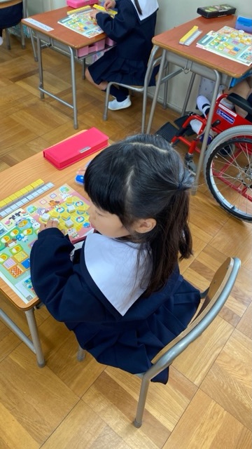 半具体物から数字へと数の大きさを認識できるように学習しています。