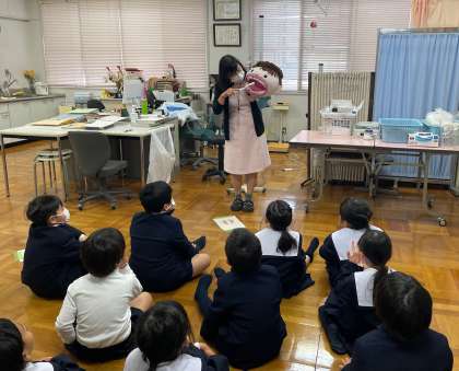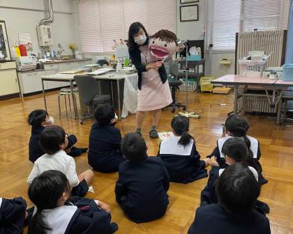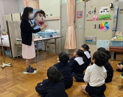 まず検診の前に、保健室の先生から上手な歯みがきの仕方を教えていただきました。