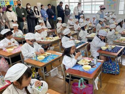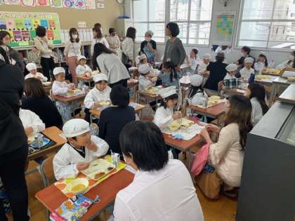 1年生は、おいしい給食を食べている様子を見ていただきました。
