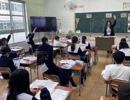 5年生では、読み物資料をもとに、加害者・被害者・観衆・傍観者という「いじめの四層構造」について考え、意見を出し合いました。