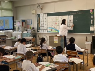 本日は、地図記号を学びました。これまで西天満小学校校区内の様子を文字で表してきましたが、地図記号を使うと分かりやすく、さらに見やすい地図になることが理解できました。