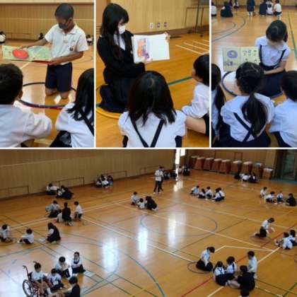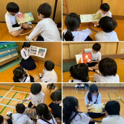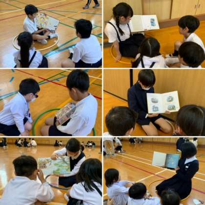 6年生が一人一冊、縦割り班の1年生に絵本の読み聞かせをしてくれました。6年生の読み聞かせがとても上手で、1年生もしっかりと聞くことができました。金曜日の全校遠足でも力を合わせて、安全に楽しく活動してほしいです。