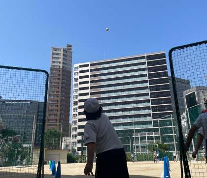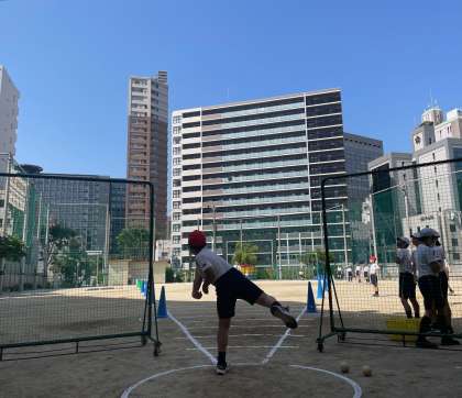 今週は、各学年が新体力テストに取り組んでいます。6年生が高く投げたボールが、まるで青空に吸い込まれていくように見えました。