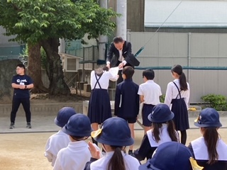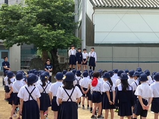 今日は児童会の認証式を行いました。議長、副議長、書記の4人が校長先生から認証状を受け取り、今年の抱負をスピーチしました。全校児童に向けて、よい挨拶の仕方や清掃活動についての話もしていました。