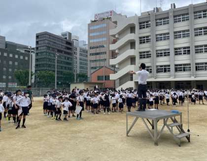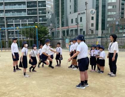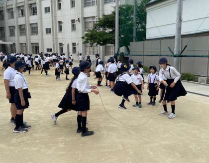 今朝の体育朝会の様子です。今回は、木曜日の全校遠足に向けて、すべてのグループで大なわとびの練習をしました。リーダーを中心にみんなで協力してがんばりました。