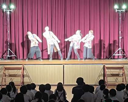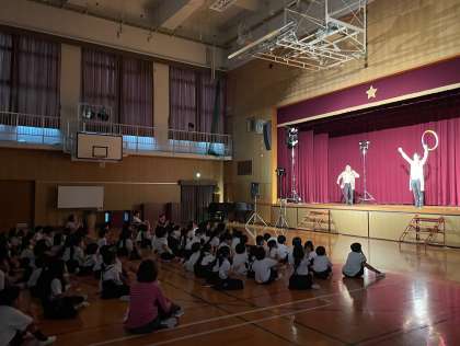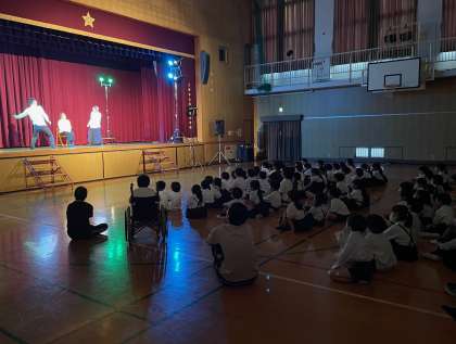 昨日、芸術鑑賞会(1〜4年生の部)をおこないました。パントマイム集団「マイムボックス」の方々が繰り広げる不思議な世界に、子どもたちも驚きの声をあげていました。