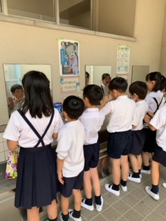 6月より給食後の歯みがきを行なっています。健康委員会の児童も、元気に放送で呼びかけました。