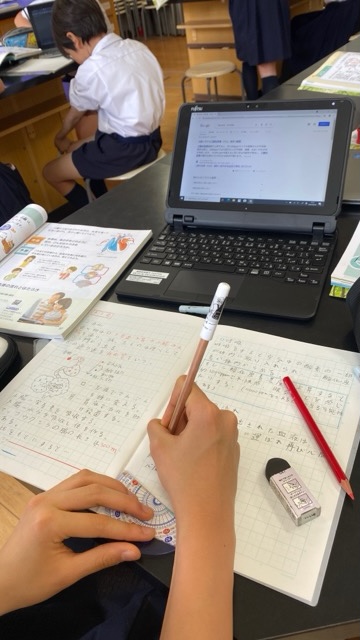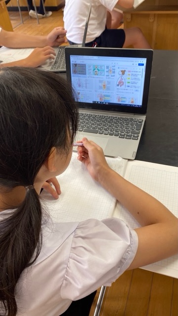 「ヒトと動物の体」について学習したことをもとに疑問に思ったことやもっと学びを深めたいと思ったことをタブレット端末で調べました。