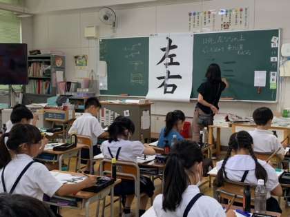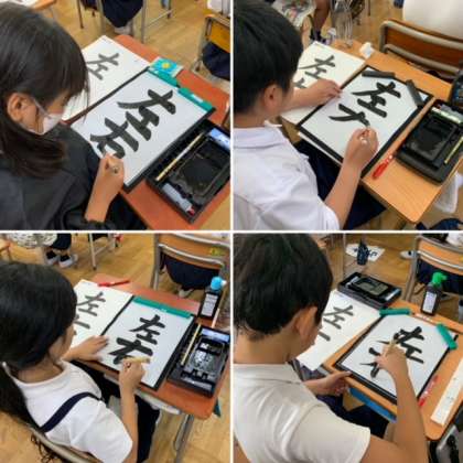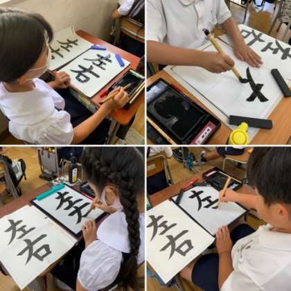 今日は、「左右」を書きました。 「左」の2画目と「右」の1画目の長さの違いに着目して、ていねいに書いていました。