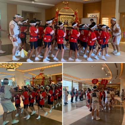天神祭の子ども神輿に本校の児童が参加しました。高学年は24日、低学年は25日に地域を渡御しました。子どもたちの大きな掛け声や担ぐ姿勢は、大人顔負けの迫力満点のお神輿でした。4年ぶりの子ども神輿でしたが、地域の伝統と文化をしっかりと学ぶことができました。