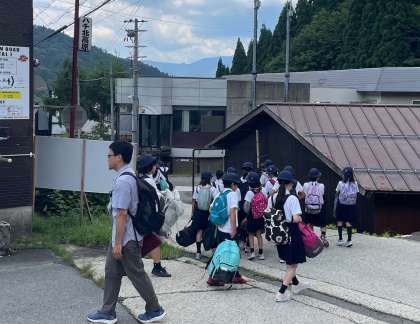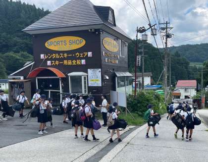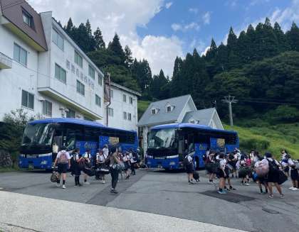 予定より少し早くハチ北高原に到着しました。バス酔いもなく、子どもたちはみんな元気です。