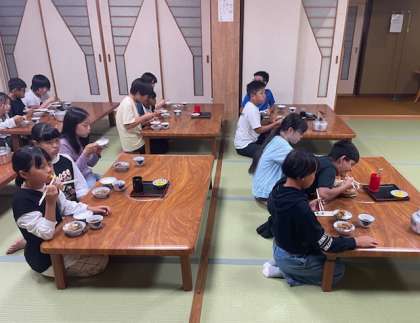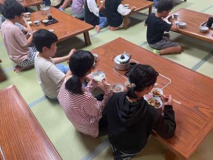 このあとのキャンプファイヤーのためにも、しっかりと食べておきましょう。