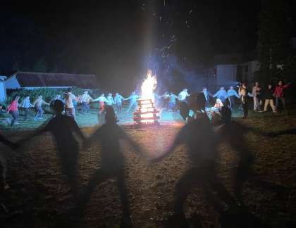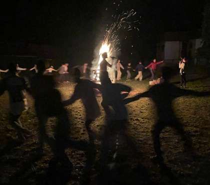 キャンプファイヤーのスタンツも最高潮に達してきました。