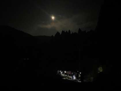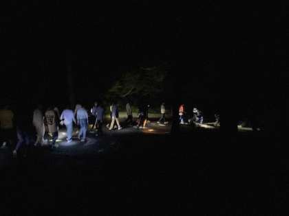 ナイトハイクを終え、宿舎に戻ります。真っ暗な夜道を懐中電灯を持って歩くのも、また新鮮な経験です。