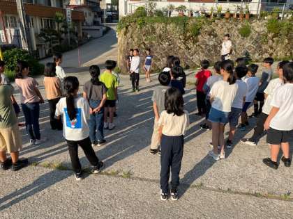 朝の集いです。昨夜も比較的早い時間帯から子どもたちは眠りについていたので、体調もよさそうです。