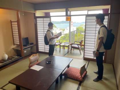 子どもたちが宿泊する客室です。窓から見える景色がとてもきれいです。