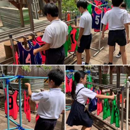 家庭科の授業で、洗濯の実習をしました。 今回は、もうすぐ始まる運動会の練習に向けて、体育で使用しているゼッケンを手洗いで洗濯しました。100枚近くあるゼッケンですが、班で協力して、てきぱきと活動していました!