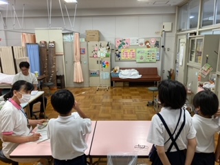 視力検査を行いました。見えにくくなってきている場合は、早めに受診していただきますようお願いいたします。