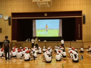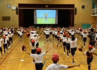 中学年は、運動会でエイサーを披露します。今日は、練習用動画を見て、より美しく見える演技を目指し取り組みました。体育館いっぱいに太鼓の音が響きわたりました。