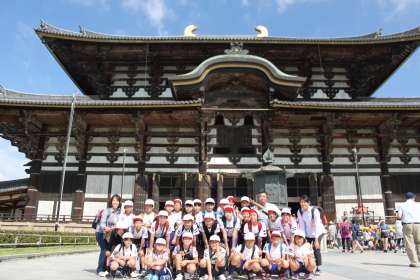 秋の遠足で奈良公園に行きました。東大寺・二月堂・若草山・春日大社・興福寺などを見学しました。遠足前にインターネットなどで調べ学習をしていたので、本物を目の前にし、子どもたちは調べたことを確認したり、実際に見ることで知らなかったことを発見したりと、とても楽しく過ごしていました。