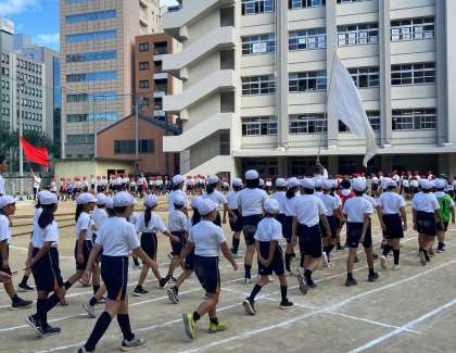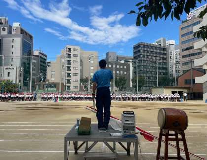 さわやかな朝の空気が広がる中、運動会全体練習を行いました。今日は大綱引きの練習です。入場から競技位置への移動、綱を引く要領など、一通りの練習をこなしました。