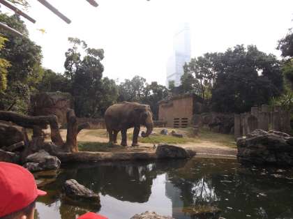 リニューアルされた天王寺公園を通り、あべのハルカスを見上げながら、動物園へ。園内では、ゾウがバリバリ音を立てながらサトウキビを食べる様子を見たり、シロクマの赤ちゃんがお母さんのおっぱいを一生懸命飲んでいる様子を見たり、動物たちをしっかり観察することができました。動物への関心が高まったと思います。