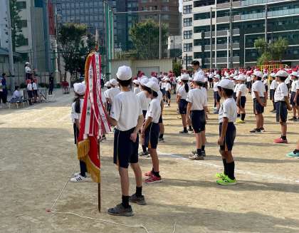 続いて、開閉会式の流れや、校歌・運動会の歌などの歌唱練習を行いました。指揮児童の振るタクトに、みんなの視線が集まります。