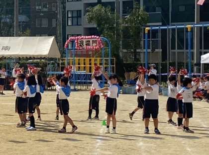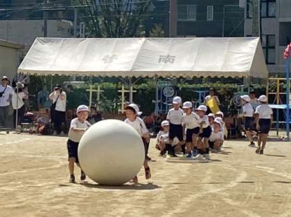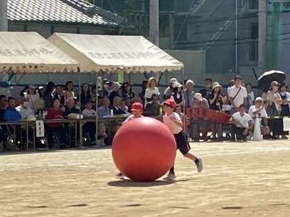 1・2年生は、笑顔いっぱいの可愛いダンスと、息を合わせた大玉ころがしを見せてくれました。