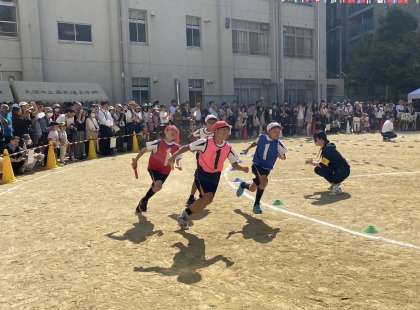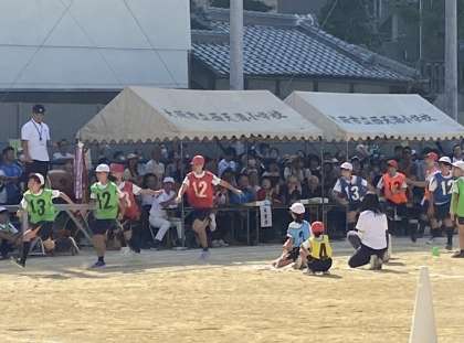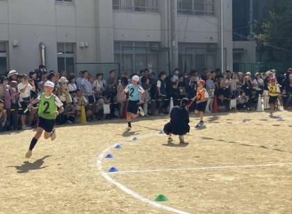5・6年生の紅白対抗リレーです。迫力のある走りと、スムーズなバトンパスで、デッドヒートを繰り広げてくれました。