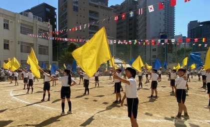 そして、今年度の運動会のフィナーレを飾るのは、5・6年生による団体演技「一期一会」です。フラッグが揃って風を切る音がグラウンド全体を包み、静と動、柔と剛が織りなす物語性豊かな演技が、観ている人の心をつかみました。