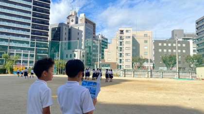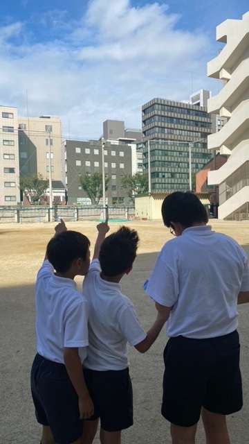 そして、実際に運動場に出て西の空の雲の様子から、これからの天気をみんなで予想しました。