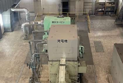 ここには「蒸気タービン発電機」が設置されています。焼却炉のボイラで発生した蒸気を利用して、発電が行われています。