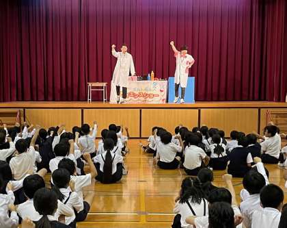昨日、2人組のエンターティナー「ボルトボルズ」をお招きして、3年生〜6年生の子どもたちがサイエンスショーを鑑賞しました。